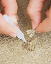 در مورد موکتهای پرزدار، در صورتی که جای سوختگی کوچک است، با قیچی قسمتهای سوخته را ببرید.